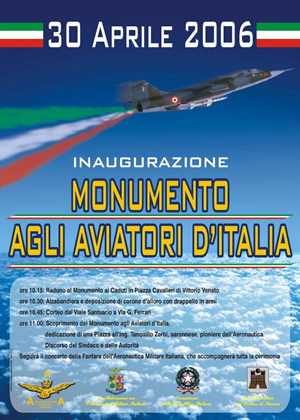 giu 25 2007 Discorso del Sindaco in occasione dell'inaugurazione del monumento agli Aviatori d'Italia domenica 30 aprile 2006