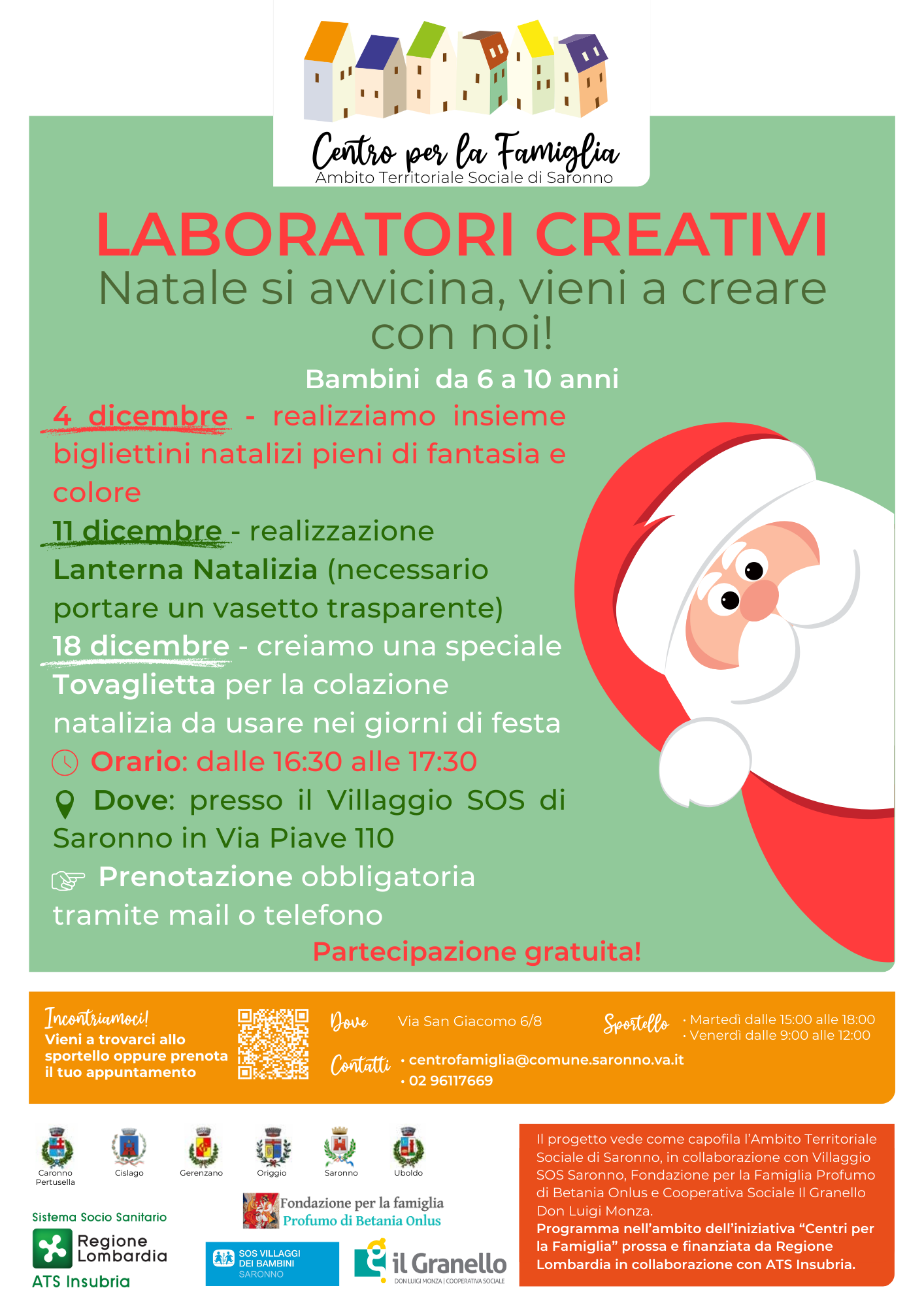 nov 29 2024 Laboratori Centro per la famiglia Laboratori natalizi per bambini da 6 a 10 anni venerdì 29 novembre 2024