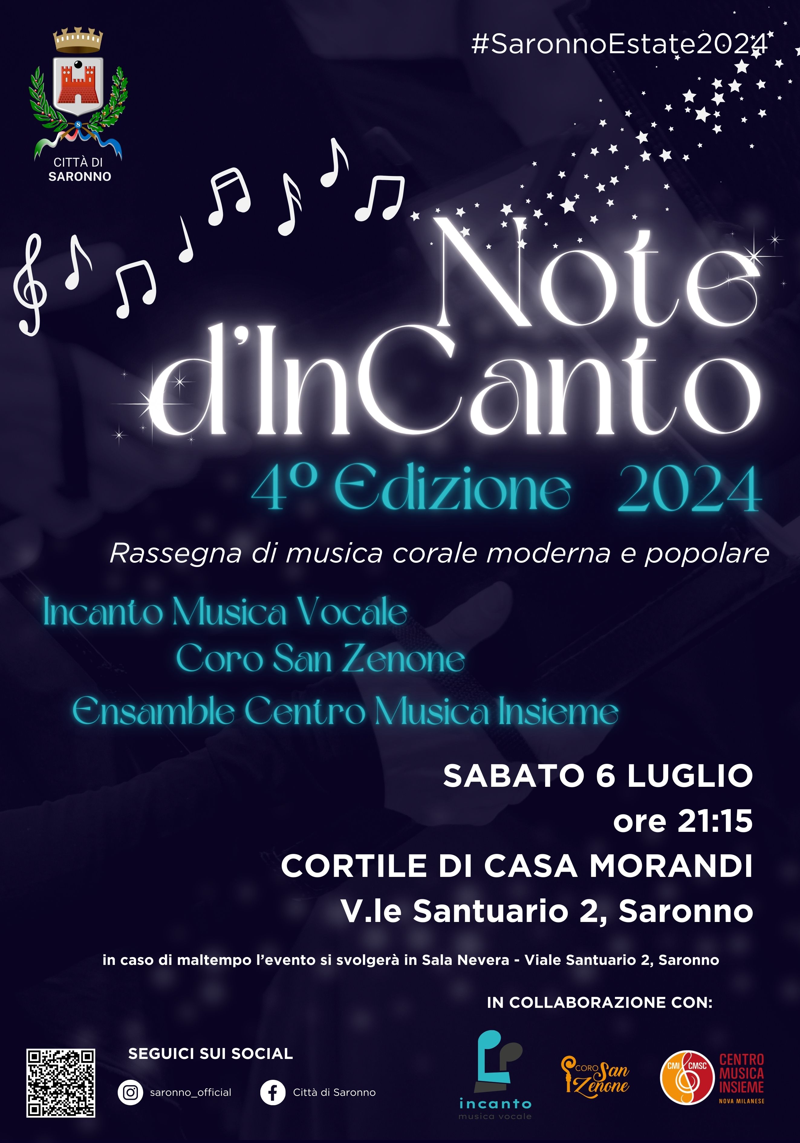 Sabato 6 luglio alle ore 21:15 il Cortile di Casa Morandi - Viale Santuario, 2 - ospiterà la quarta edizione della rassegna di musica corale moderna e pop "Note d'InCanto".