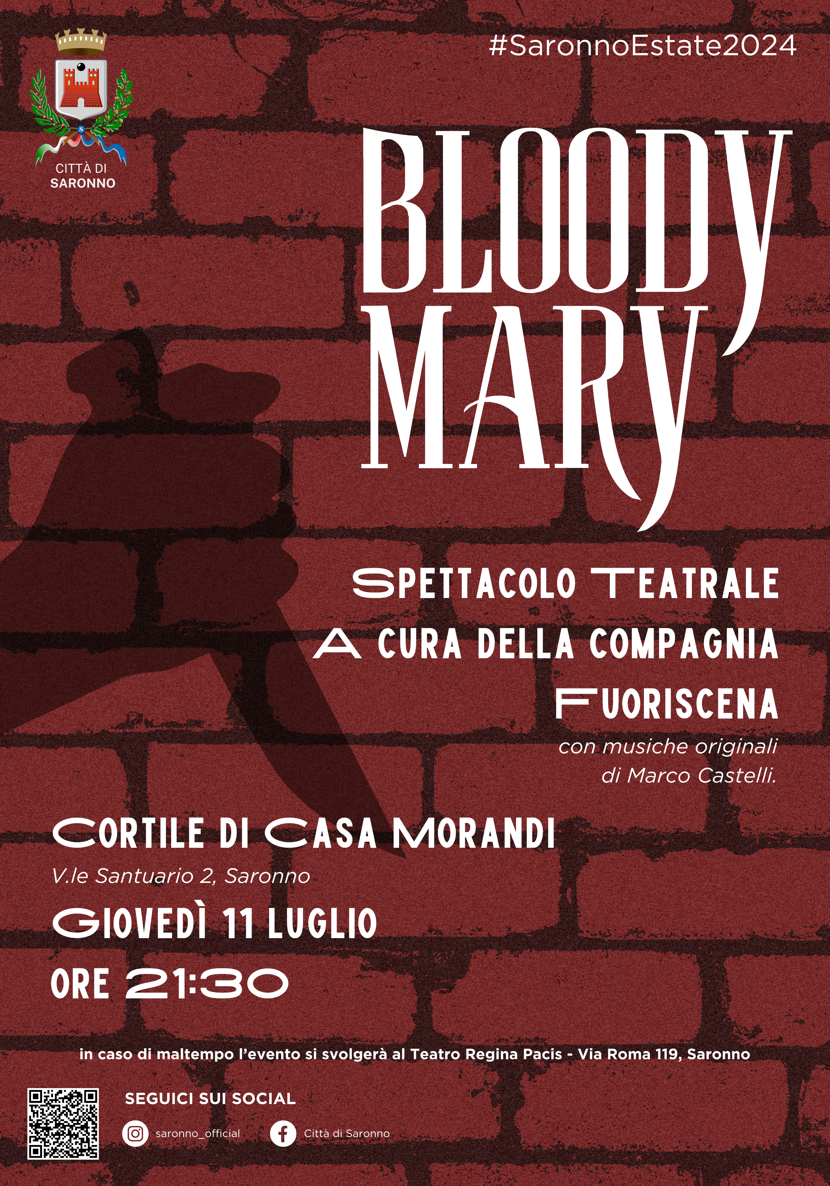 Giovedì 11 luglio alle ore 21.30 nel cortile di Casa Morandi in Viale Santuario 2 andrà in scena lo spettacolo teatrale intitolato "Bloody Mary".