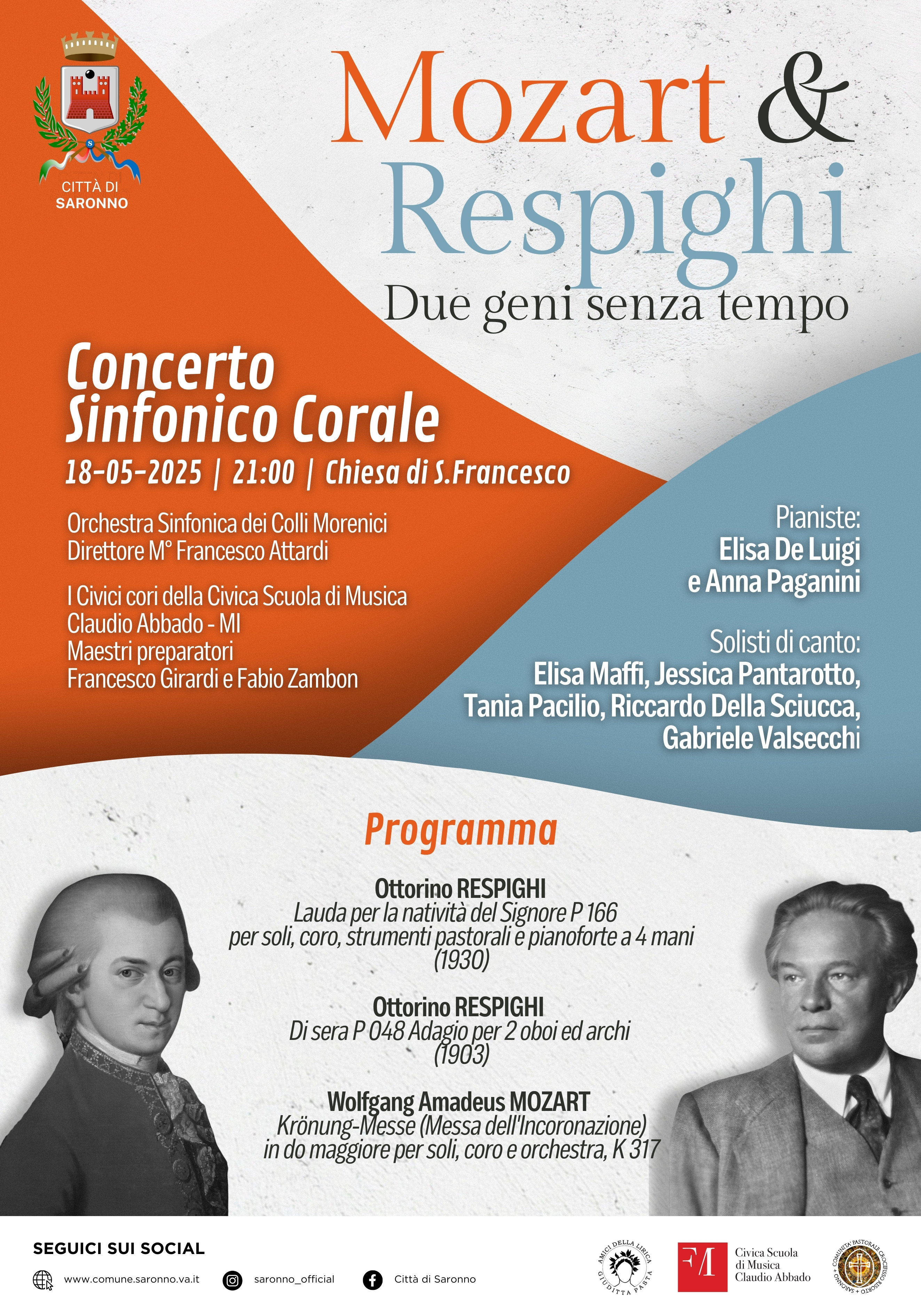 mag 08 2025 MOZART E RESPIGHI. DUE GENI SENZA TEMPO Concerto Sinfonico-Corale domenica 18 maggio 2025