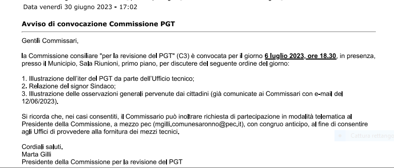Convocazione Commissione C3 "per la revisione del PGT" del 11 luglio 2024 h. 18:30