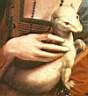 Per la tradizione l'ermellino (fig. 12) è simbolo di moderazione e purezza per il candore del suo pelo e, di incorruttibilità poiché si dice che essendo molto amante della pulizia preferisce lasciarsi prendere dal cacciatore piuttosto che entrare nella tana se sudicia (fig. 13). Il senso è quello di riconoscere un rapporto fra ciò che l'ermellino rappresenta e il candore di sentimenti della Dama. Oltre a ciò, in greco ermellino si dice, per estensione, "galè" il che allude innanzi tutto al cognome di Cecilia. C'è da dire ancora che qui l'armellino è dipinto nella classica posa araldica con la zampa anteriore sollevata, simbolo di nobiltà, ragion per cui rappresenterebbe l'emblema dell'ambitissimo ordine di San Michele (detto appunto dell'Armellino), che il re di Napoli aveva istituito nel 1465, di cui si fregiavano il re d'Inghilterra e il duca d'Urbino e che venne conferito a Ludovico Sforza nel 1488. Kwiatkowski ha notato che il mantello dell'animale è stato dipinto con la mano sinistra e, che le crettature della pittura stessa rivelano la presenza di un disegno a tratteggio eseguito con la mano sinistra nello strato inferiore.